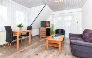 Seehund 1 ist eine gemütliche Ferienwohnung in der ersten Etage des Hauses zum Seehund und eignet sich ideal für Paare oder Gäste, die kurze Wege und den Komfort des Haupthauses schätzen. Die Wohnung ist über eine Treppe erreichbar und überzeugt durch ihre ruhige Lage sowie die direkte Nähe zu Garten und Swimmingpool.